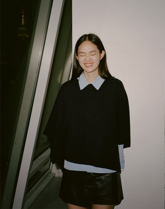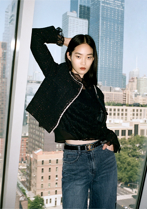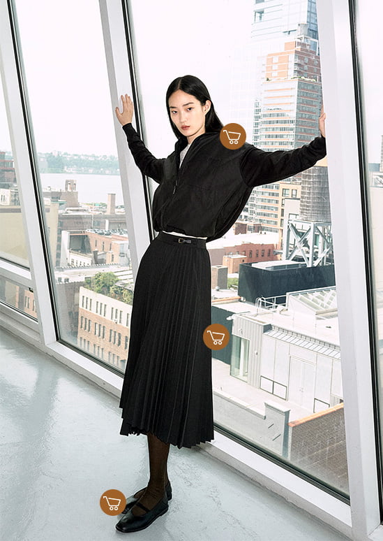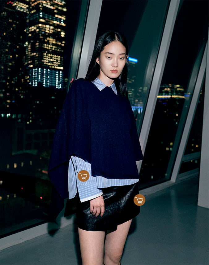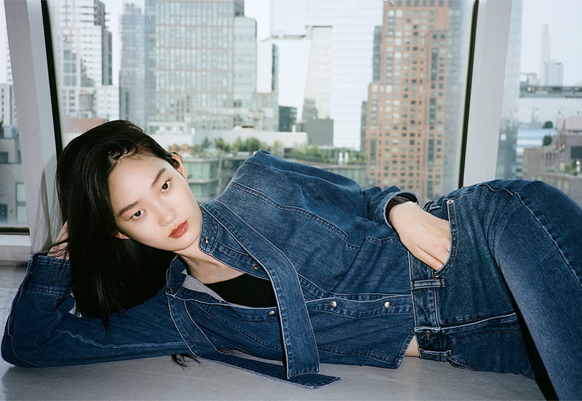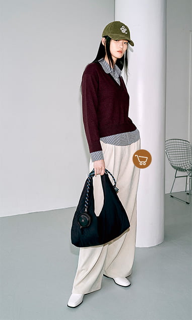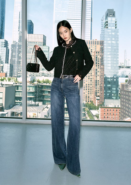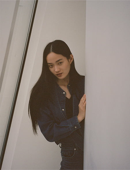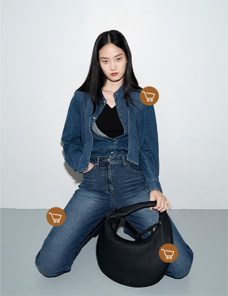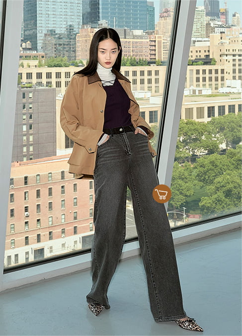 밑단 워싱 뒷 턱 와이드 데님 팬츠