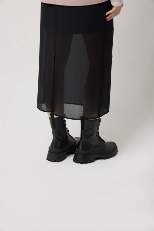 뒤 허리 밴딩 적용으로 착장 시 편안하며, 롱한 기장감으로 스타일리시한 무드 연출.