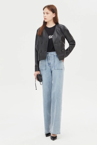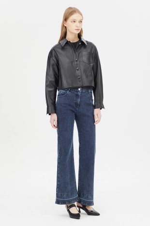 라운드넥에 크랍 기장으로 캐주얼하면서 트렌디한 무드 연출.