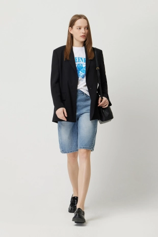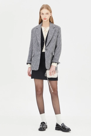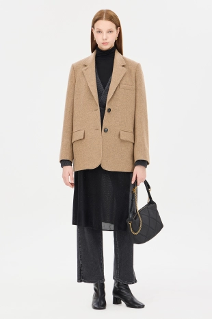 테일러드 카라넥에 싱글 2 버튼 여밈으로 오픈 클로징이 심플함.