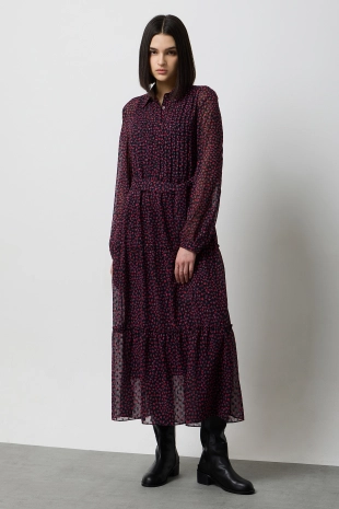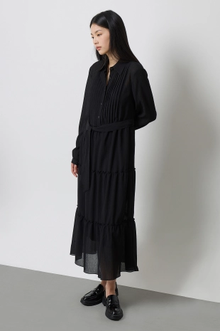 링클 텍스쳐가 고급스러운 무드를 연출하는 타이 롱 원피스.