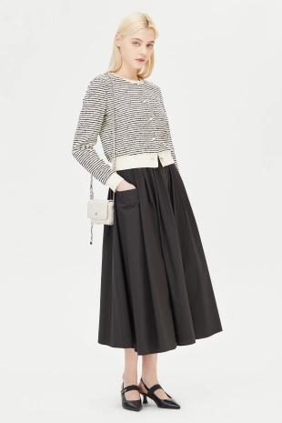 크롭 기장감에 어깨 패드 디테일로 엣지있는 실루엣을 연출.
