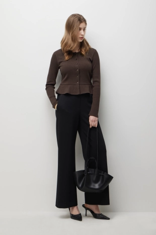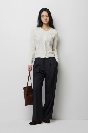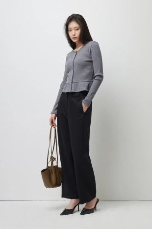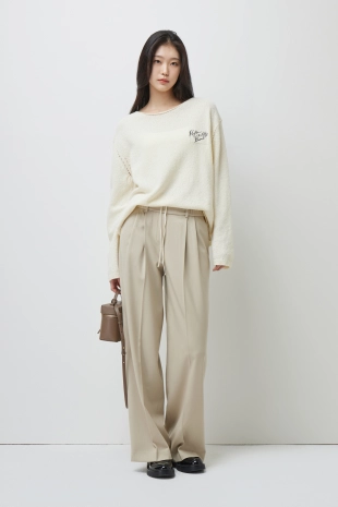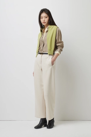 부드러운 터치감이 돋보이는 새틴소재의 팔라조 팬츠.