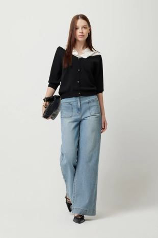 울 혼방의 간절기 소재로 부드러운 터치감의 니트 아이템.