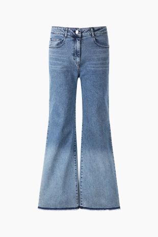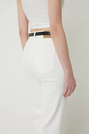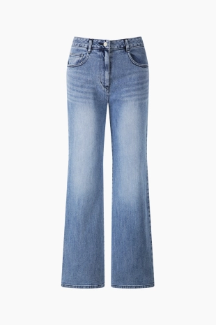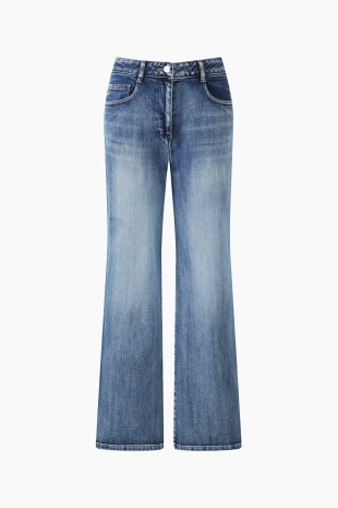 앞면의 아웃 포켓 패치 디테일이 돋보이는 데님 팬츠.