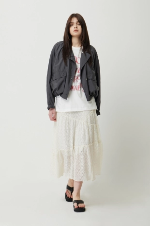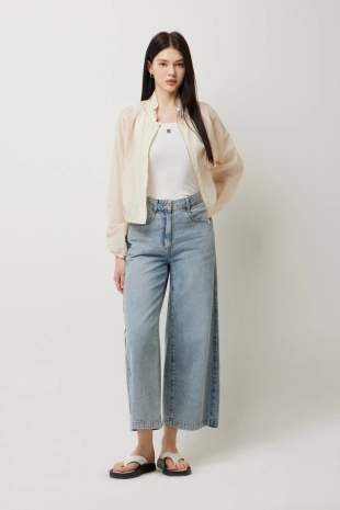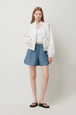 니트 카라와 밑단의 시보리로 캐주얼하면서 여성스럽게 제안.