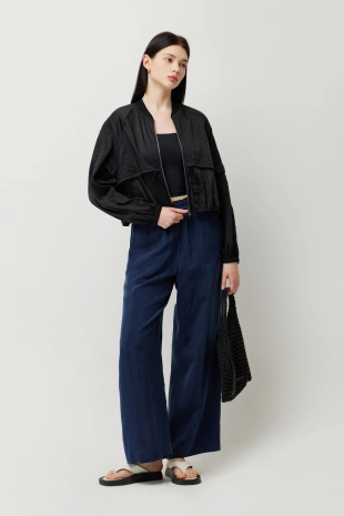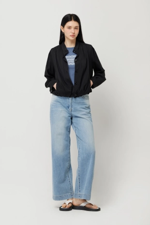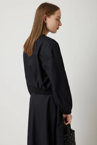 소매 끝단 밴딩 처리로 안정적인 실루엣 연출.