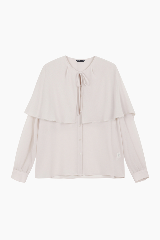 잔잔한 레이스 끝장식의 케이프 형태가 돋보이는 블라우스.