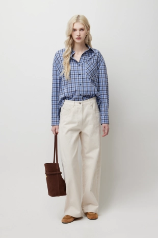 [Online Exclusive] 크롭 링클 체크 셔츠