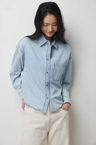 [Exclusive] 포켓 자수 데님 셔츠