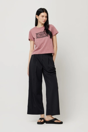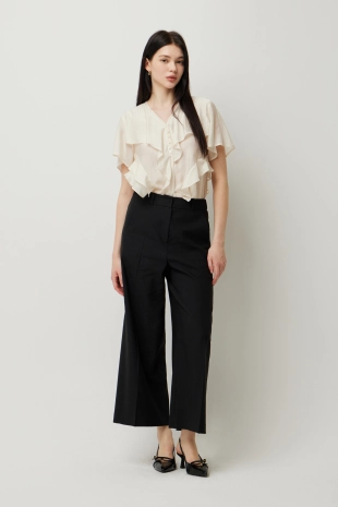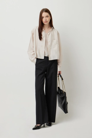 투턱의 와이드한 실루엣 라인이 매력적인 팬츠.