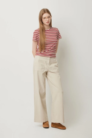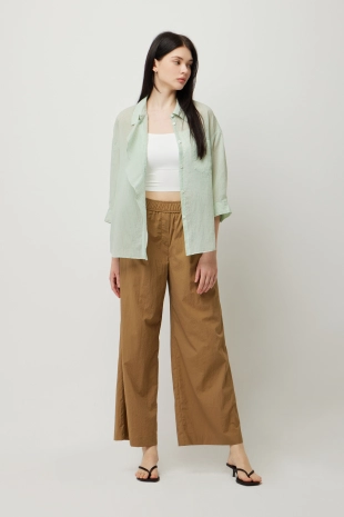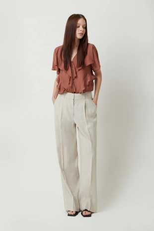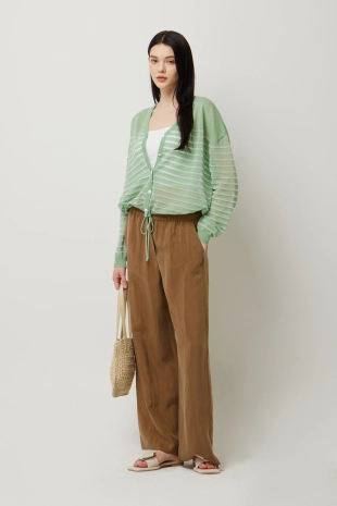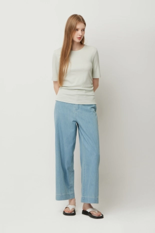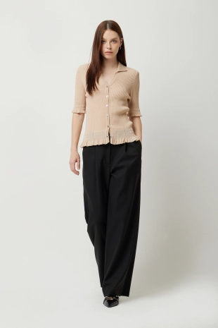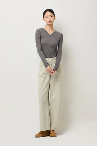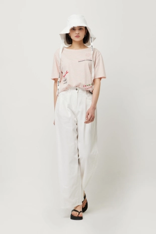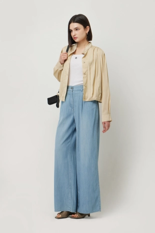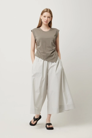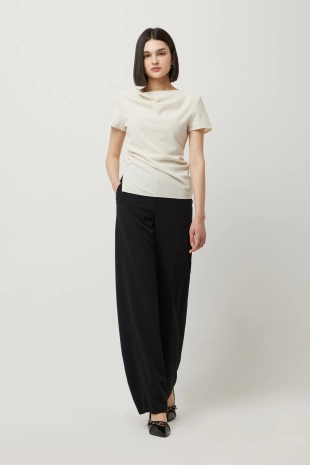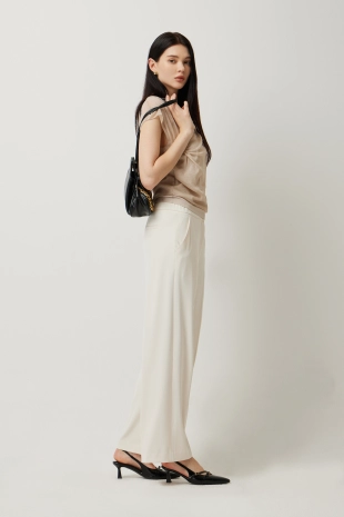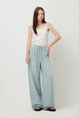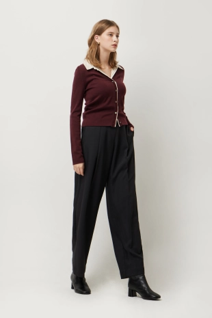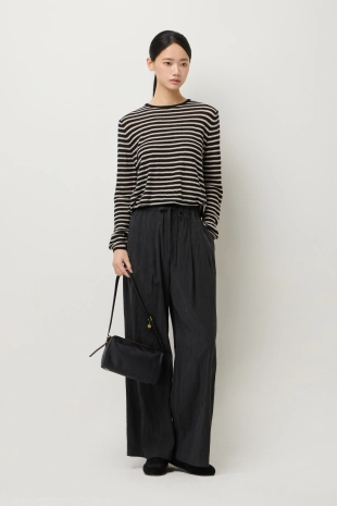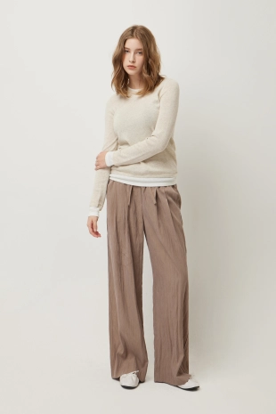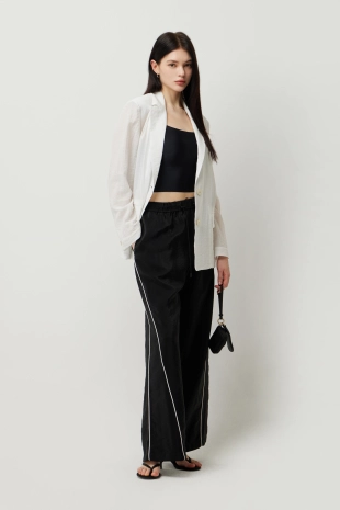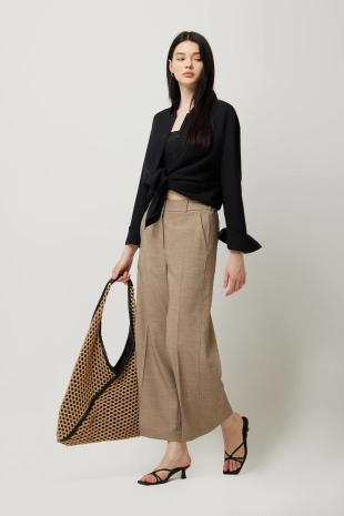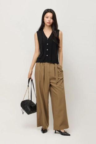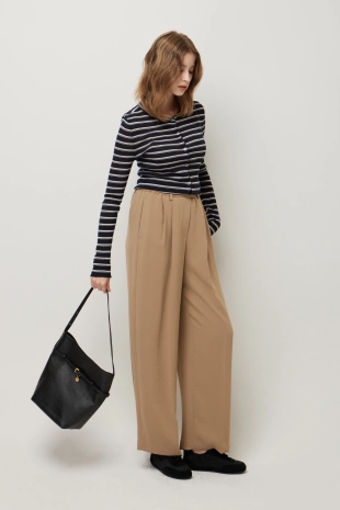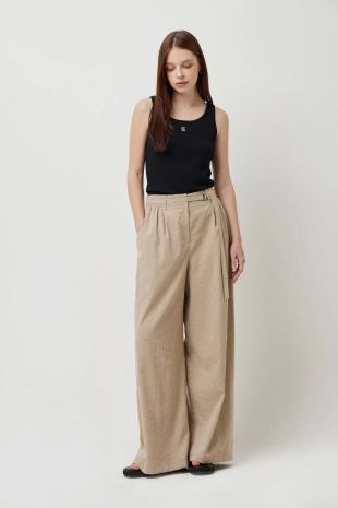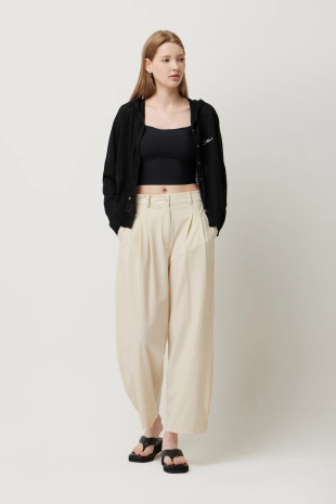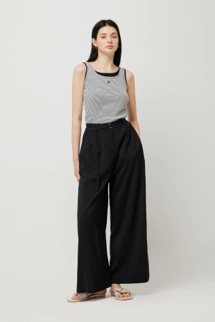 허릿단에 이중 디테일로 포인트를 준 원턱 롱 팬츠.