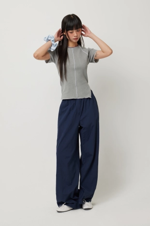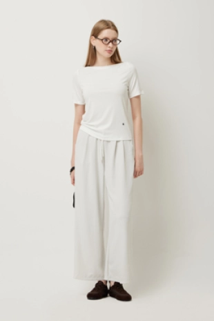 슬림핏의 크랍 기장감으로 트렌디한 무드의 아이템.