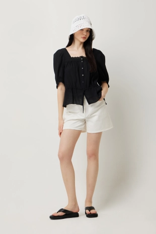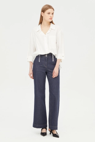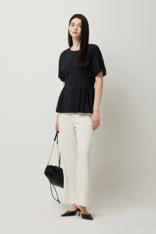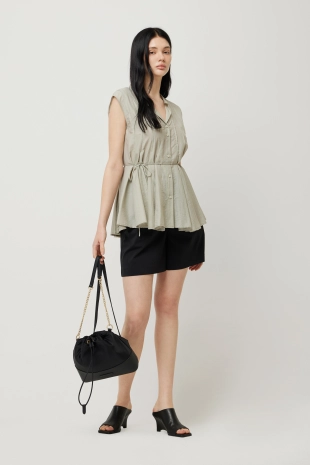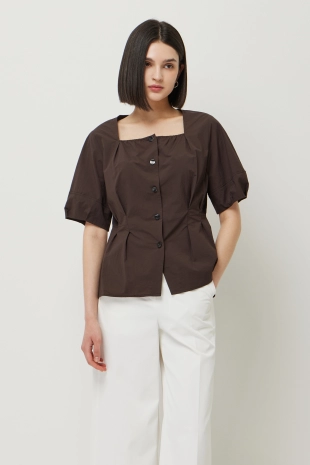 은은한 광택감의 소재에 턱 디테일이 돋보이는 셔츠 블라우스.