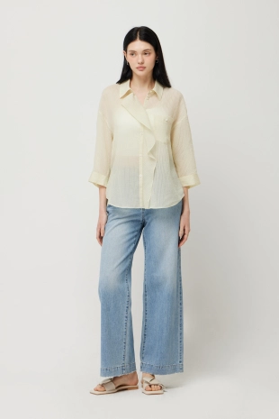 요철감있는 코튼혼방의 시어서커 소재로 구김에 강하며 부드러움.