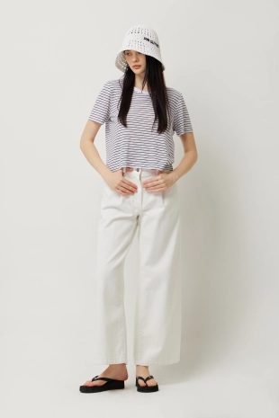 텐션감이 좋은 코튼 혼방 소재로 착장감과 터치감이 좋음.