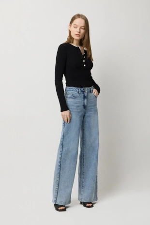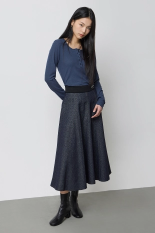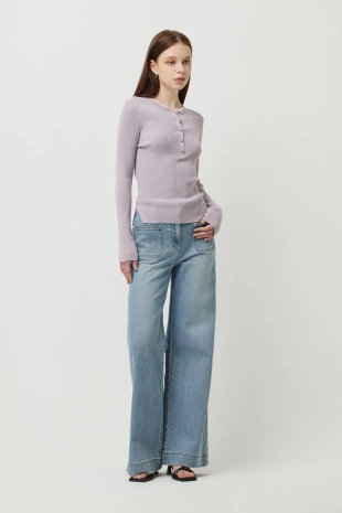 헨리넥 구조가 돋보이는 니트 탑.