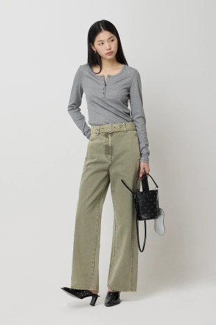 길게 내려오는 하프 버튼업 디테일의