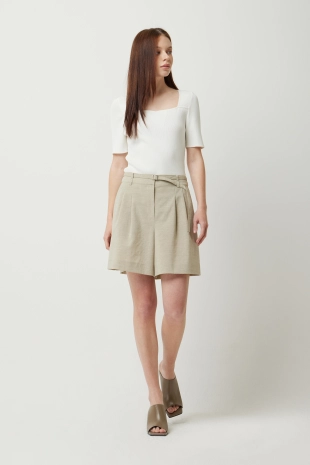 언발란스한 헴라인과 꼬임 디테일로 포인트를 더해 줌.