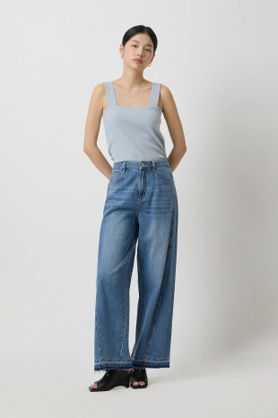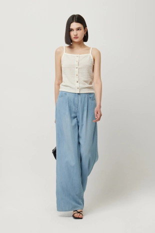 반다나 스카프를 두른 듯한 디자인의 유니크한 슬리브리스 탑.