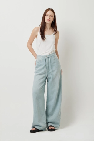 실크같은 광택이있는 소재로 여성스러운 무드 연출.