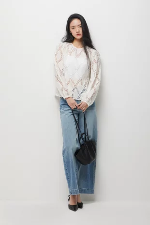 프린지 포인트의 링클 소재가 돋보이는 블라우스.