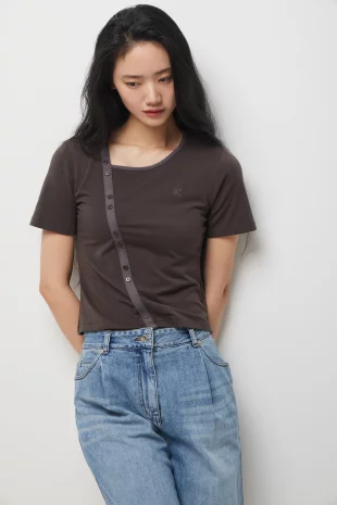 빈티지하고 캐주얼한 프린팅 디자인이 돋보이는 반팔 티셔츠.