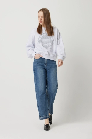 중앙 심볼 프린트가 돋보이는 스웻셔츠.