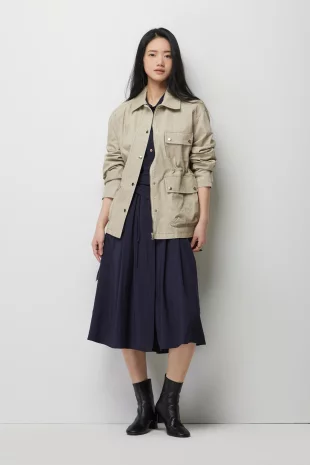 앞면 네 개의 아웃포켓으로 캐주얼한 사파리 점퍼의 무드를 표현함.