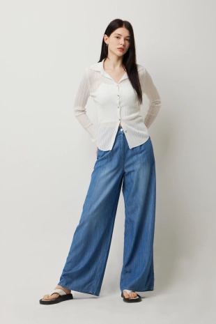 베이직한 디자인과 와이드 핏의 캐주얼한 팬츠.