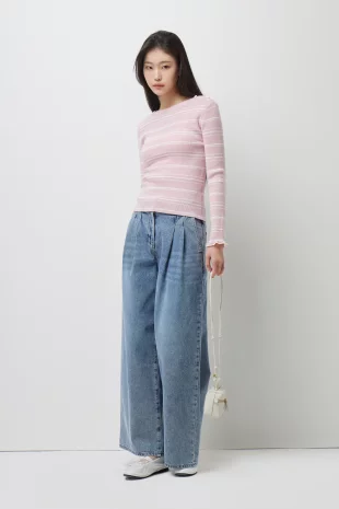 코튼사 스트라이프 언발 트임 니트