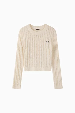 Wishing) 스칼럽넥 케이블 니트