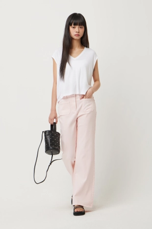 적당한 크랍 기장감으로 부담없이 착용 가능함.