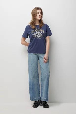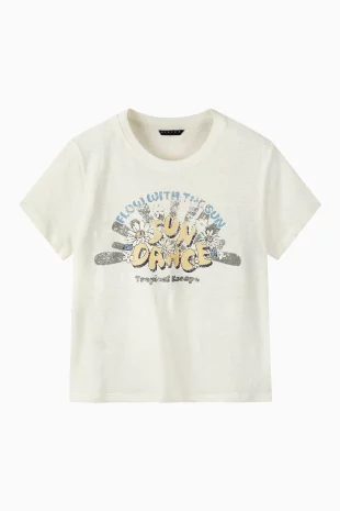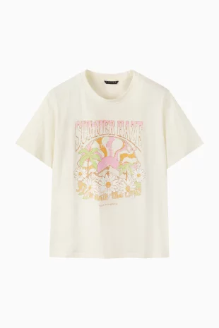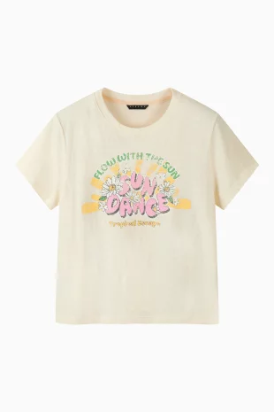 플라워 프린트 반팔 티셔츠.