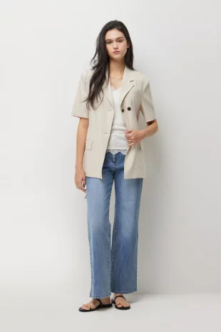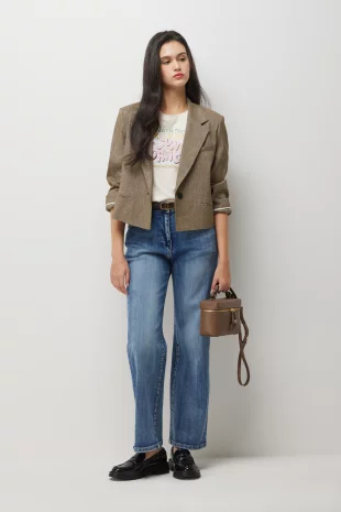 멜란지 컬러감으로 캐주얼한 무드가 드러나는 자켓.