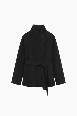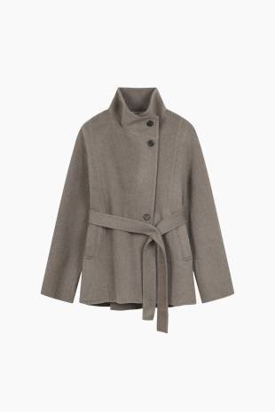 울 블렌드 이중지 숄 가디건