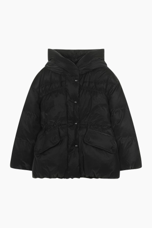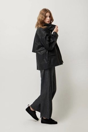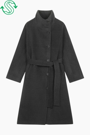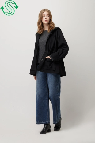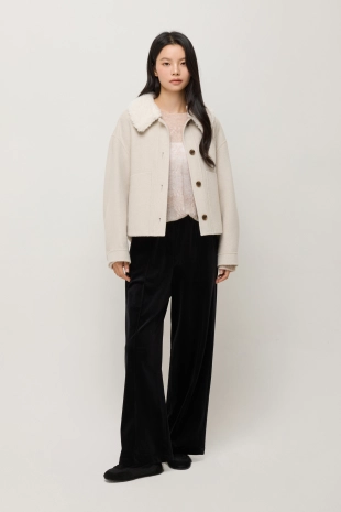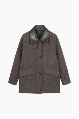 울 블렌드 버튼 업 후드 니트