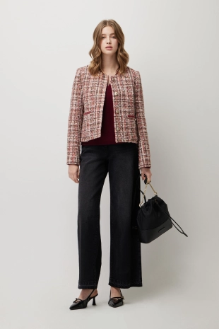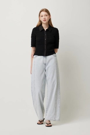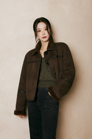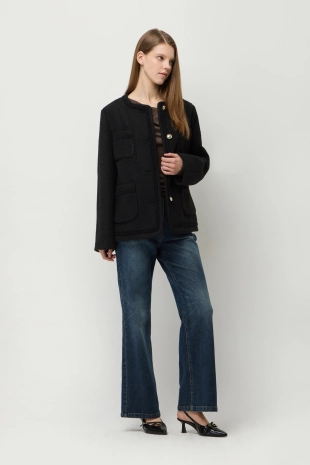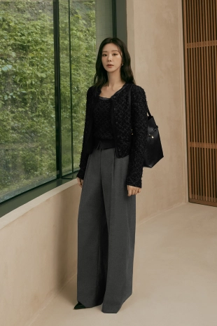 컨트라스트 파이핑 부클 가디건