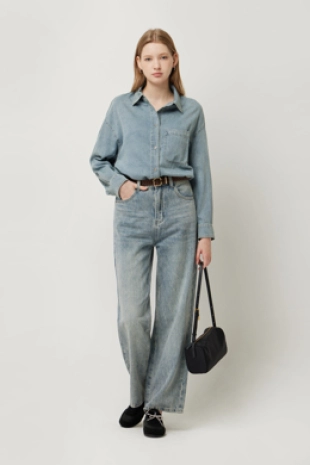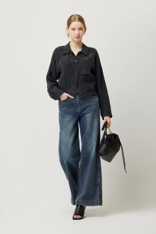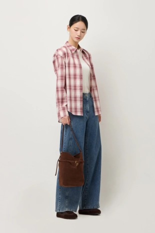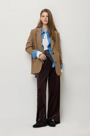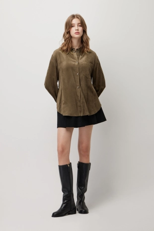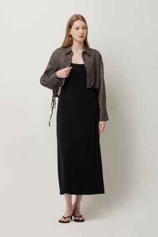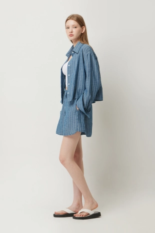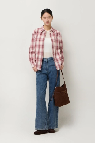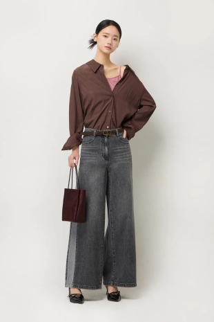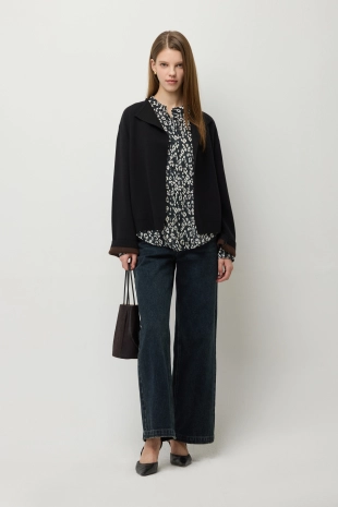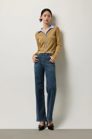 우븐 셔츠 배색 슬림 니트 가디건