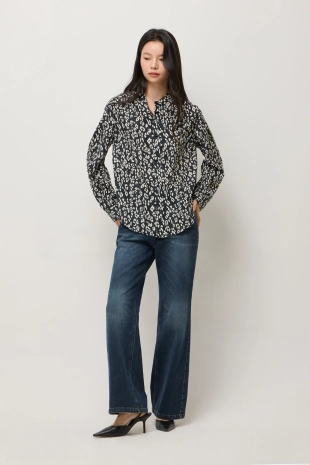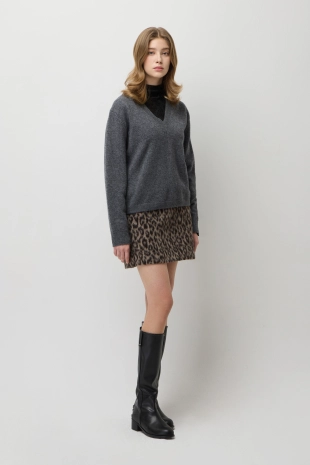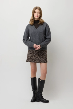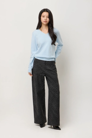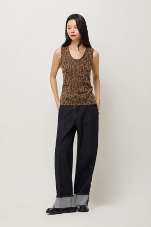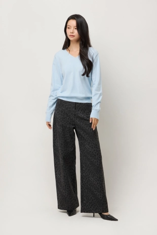 알파카 블렌드 레오파드 슬리브리스 니트