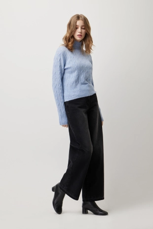 알파카 블렌드 케이블 터틀 크랍 니트