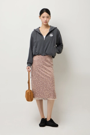 후드 자수 니트 가디건