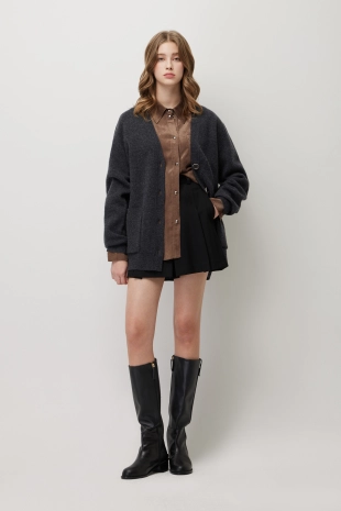 캐시미어 블렌드 이중지 니트 가디건