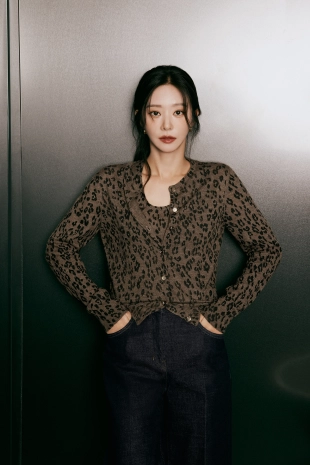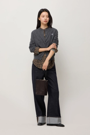 알파카 블렌드 레오파드 가디건