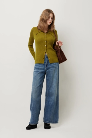 울 블렌드 자개 단추 가디건