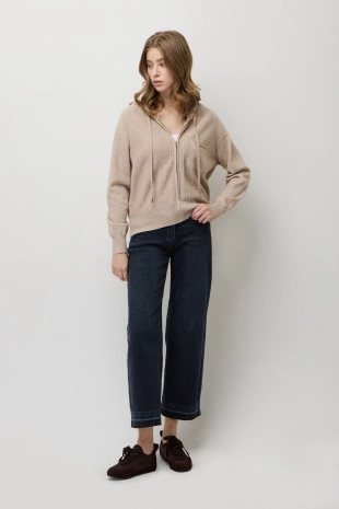 울 블렌드 골변형 니트 후드집업