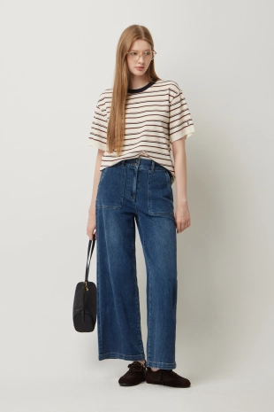 [Online Exclusive] 스트라이프 반팔 니트
