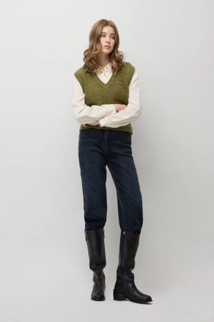 울 블렌드 하트 케이블 니트 베스트