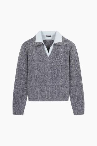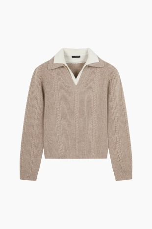 캐시 블렌드 케이블 배색 카라 니트