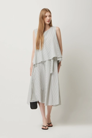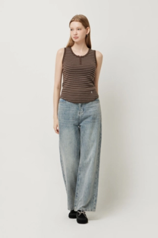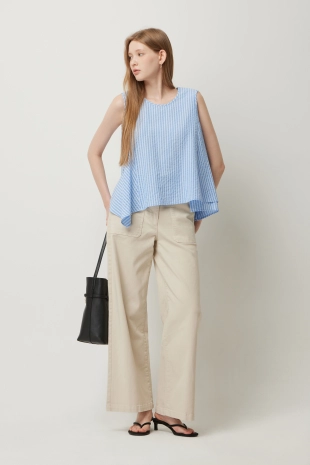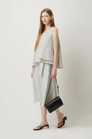 스트라이프 슬리브리스 니트